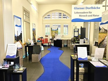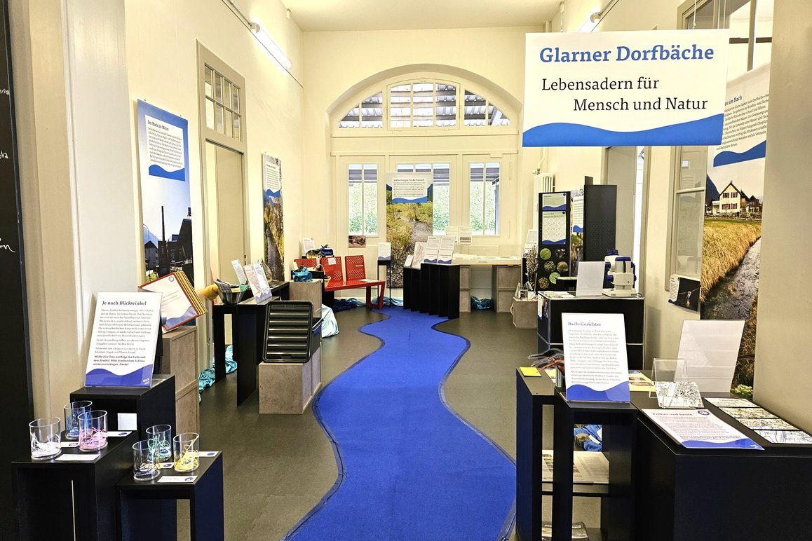 Dorfbäche bieten einiges. Wir erholen uns an ihnen. Sie liefern Strom. Bei Hochwasser sind sie auch furchteinflössend. Sind die Bäche nicht zu stark verbaut, wohnen darin und daran zahlreiche Wildtiere und -pflanzen. In der Ausstellung erfahren die Besuchenden aus Sicht von Mensch, Fisch, Kleintier, Vogel oder Pflanze, wie sich die Dorfbäche im Laufe der Zeit verändert haben und welche Herausforderungen das mit sich bringt. Zudem erhält man Einblick in Projekte, die Glarner Dorfbäche wieder streckenweise naturnaher gestalten, also revitalisieren. An interaktiven Stationen können Gross und Klein dem Hochwasser lauschen, die Stromturbine drehen und dem Fisch dabei helfen, am Kraftwerk vorbeizukommen, den Alltag des Eisvogels mit dem Feldstecher vom Bänkli aus beobachten, einen Dorfbach begrünen und beleben, die Bachqualität bestimmen oder Wasserkleintiere und Fischschuppen mikroskopieren.